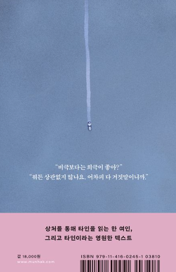 상처가 생긴 그 순간의 감각과 정서는 전달되지만, 그 이전의 맥락이나 이후의 의미는 결코 온전히 포착되지 않습니다. 이를테면 누군가의 손목에 남은 자해의 흔적을 만졌을 때, 주인공은 그 절망의 감정을 생생히 느낄 수 있습니다. 그러나 왜 그런 선택을 했는지, 그 후 어떻게 살아왔는지는 알 수 없지요. 결국 주인공이 마주하는 것은 타인의 ‘전체’가 아니라 ‘조각’이며, 그마저도 자신의 해석이라는 틀을 통해 재구성된 파편적 이야기일 뿐입니다.